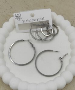 Gümüş Renkte 6’lı Çelik Halka Küpe
