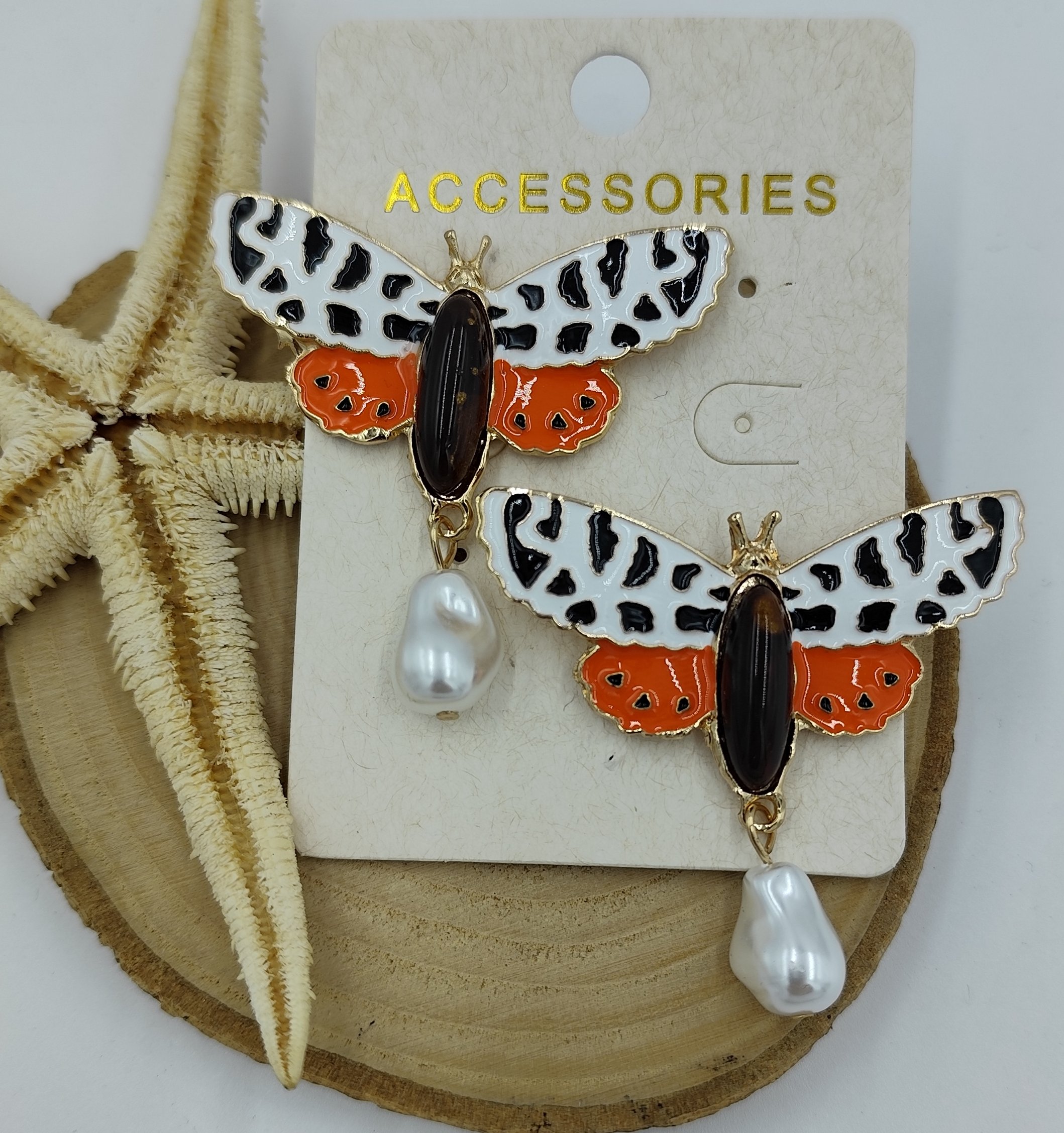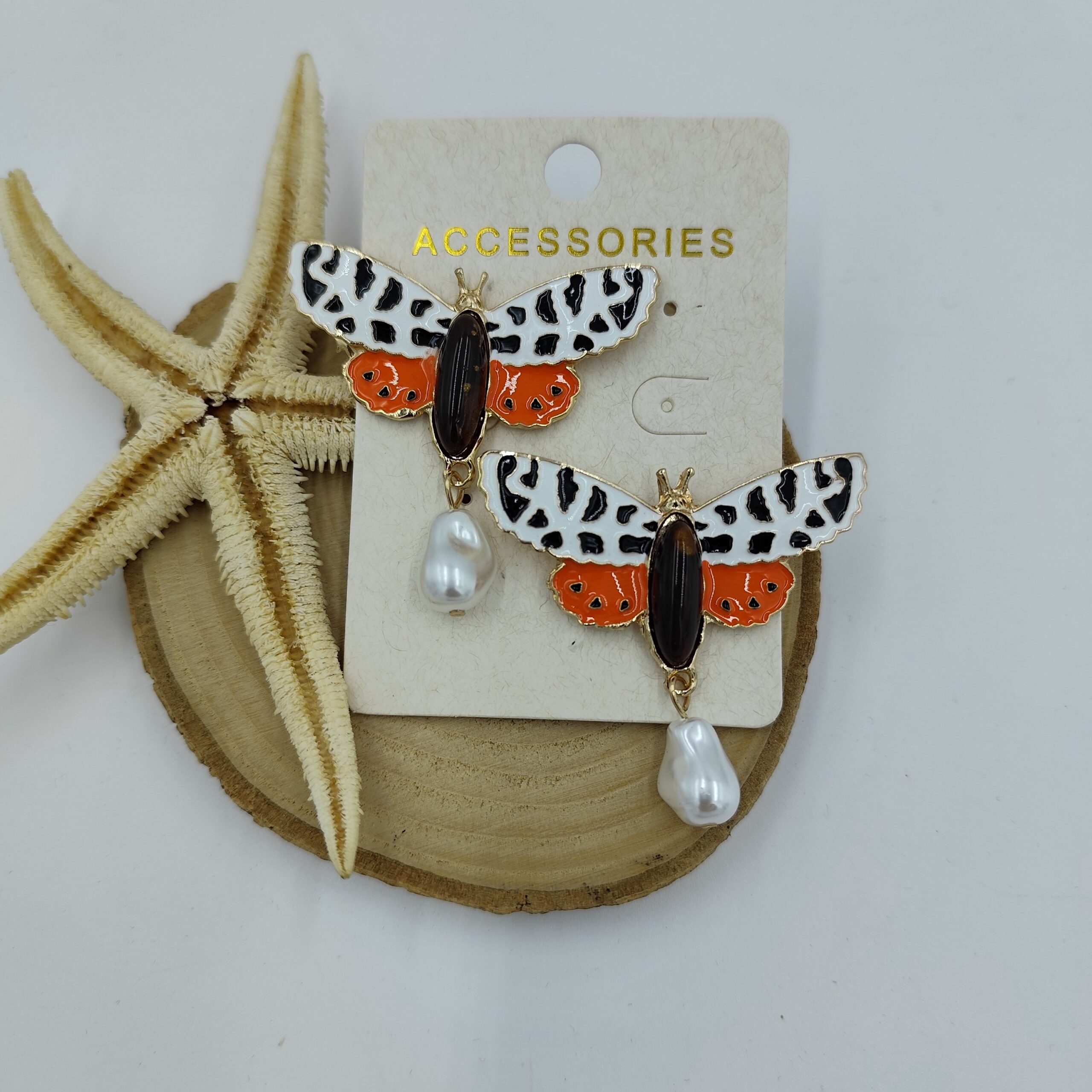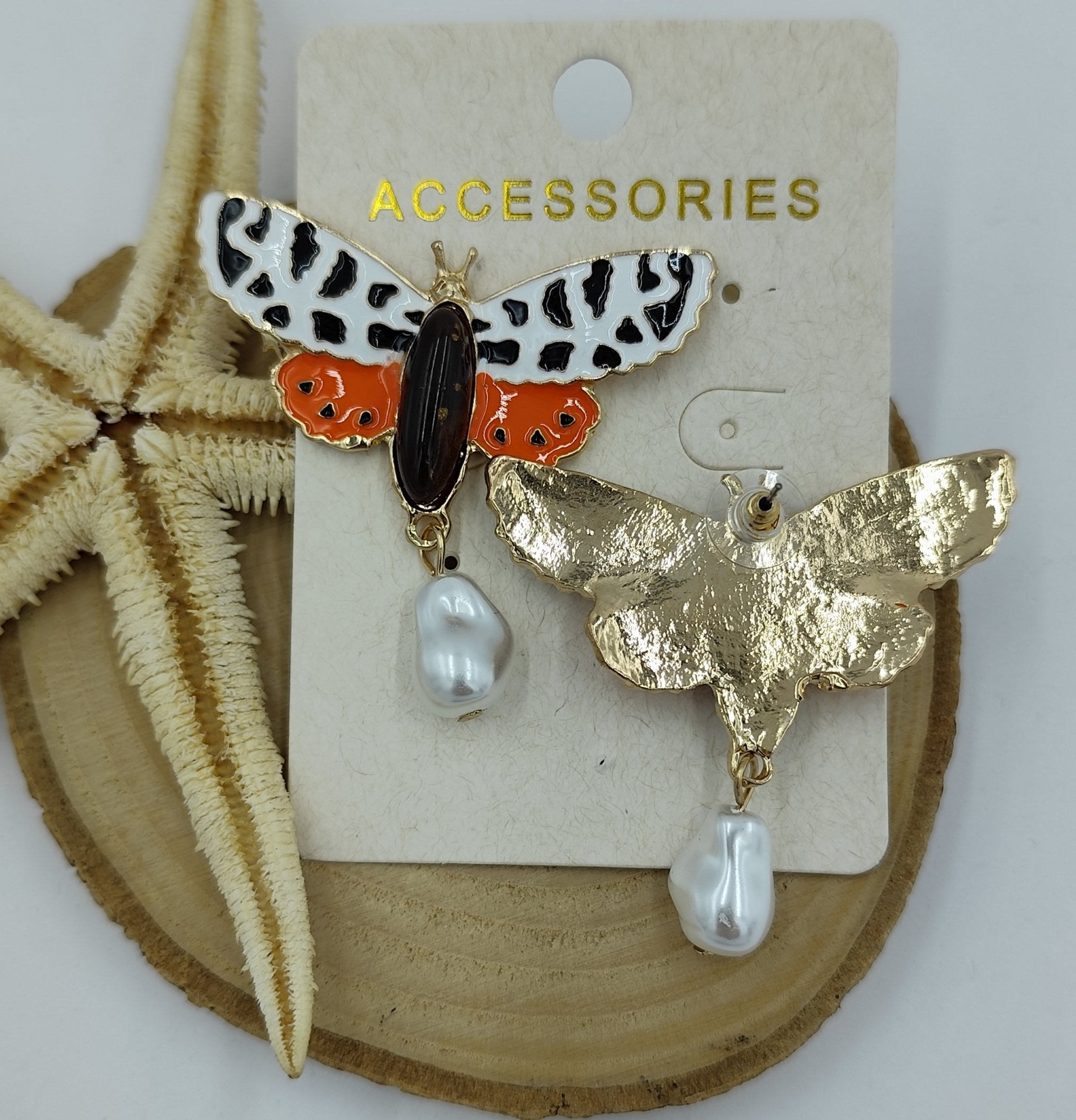 İnci Detaylı Gold Kelebek Küpe
