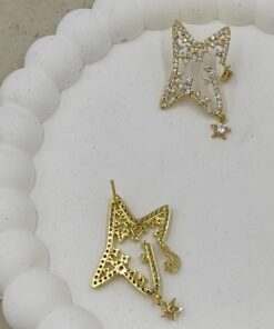 Taş Detaylı Ay Yıldız Küpe Gold